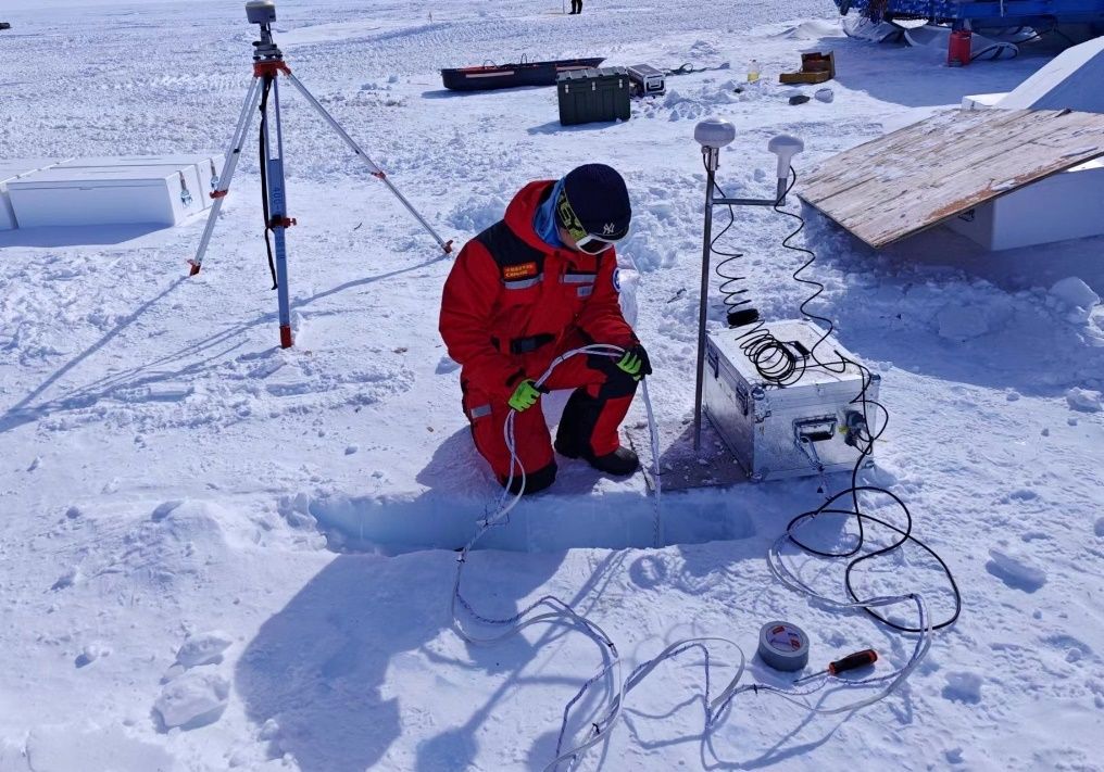 In the Qilin Subglacial Lake area inland, ground-based and UAV-based dual-mode detection using low-frequency ice-penetrating radar was conducted to obtain data on shallow artificial targets and internal crevasses of the ice sheet, supporting the inversion of internal ice sheet structure.