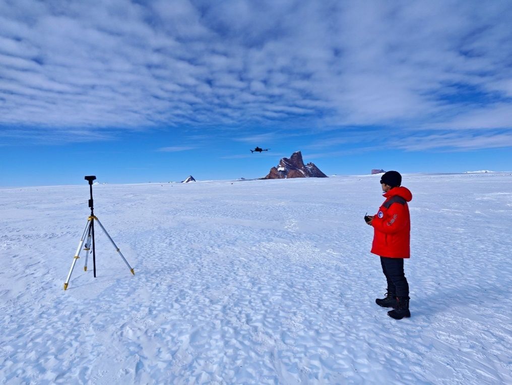 Data collection using UAV aerial photography in the Groves Mountains region.