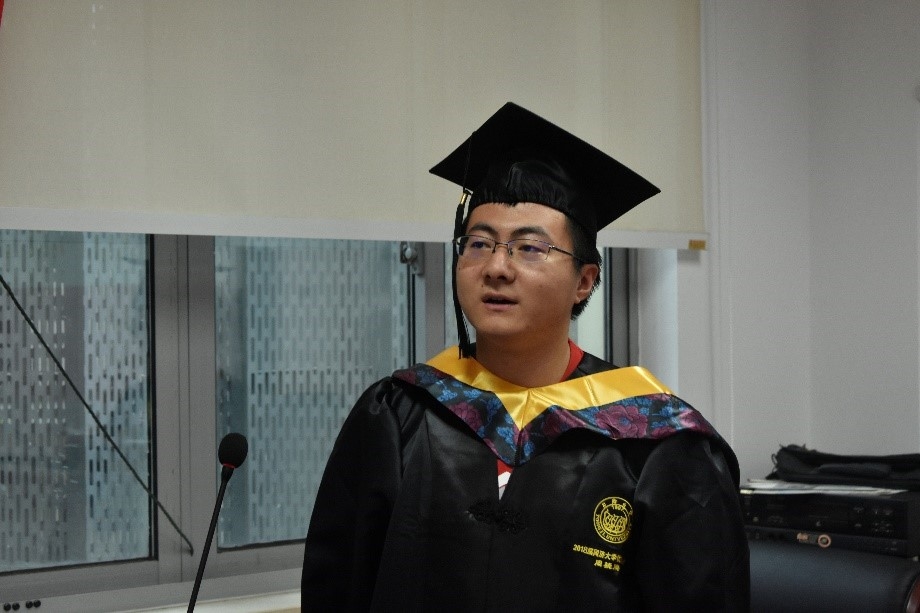 的全体老师向圆满完成学业的毕业生们表示衷心地祝贺,他希望同学们始终拥有一颗童心和好奇心,在成功和困难面前都能够保持孩童般的笑脸,要让这份童心和好奇心在时间和空间尺度上不断延展;始终保持勇气和恒心,困难和挫折会使大家更加强大,也将因此懂得感恩生命中出现的困难,感恩一路同行伸出援手的人们,更感恩那个没有轻言放弃的自己;在辉煌的时候不自我膨胀,在低谷的时候不自怨自艾,不断地超越自己。最后,郝彤老师希望同学们在新时代里更好地找到自己的定位,把握自己在国家富强、民族复兴的历史进程中的责任和使命,并祝福大家在“一生太短、一瞬好长”的芳华岁月中,前程似锦,一帆风顺!