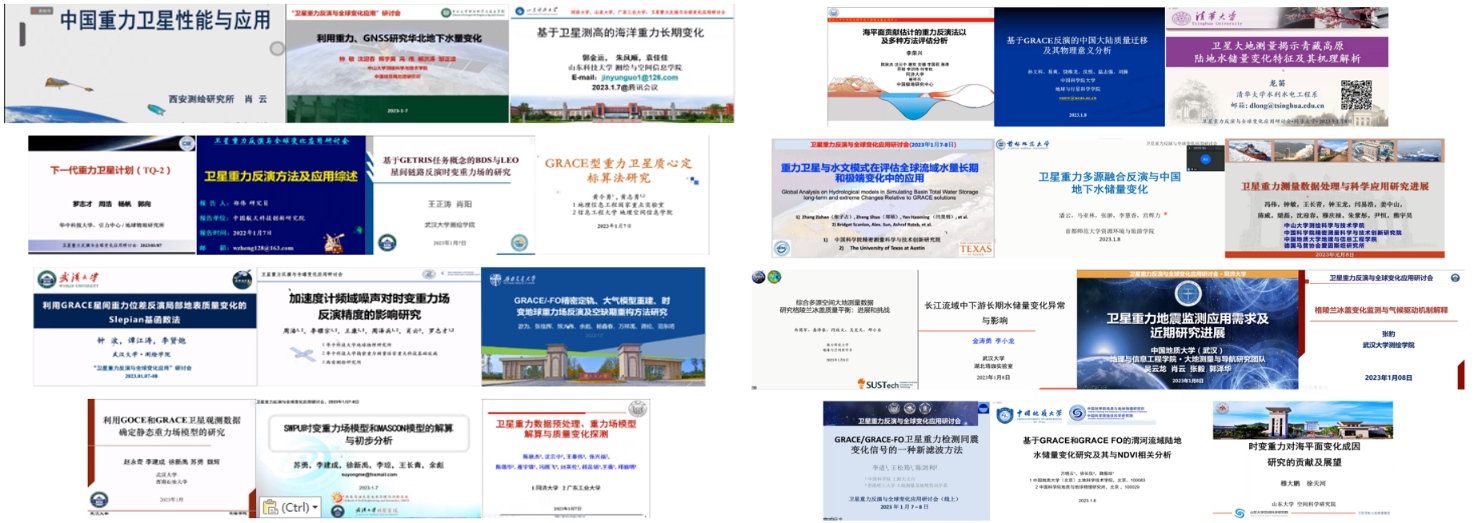 本次研讨会为期两天共两个专题,(1) 卫星重力反演理论与方法 专家主要介绍了我国重力卫星的研究成果和应用、下一代重力卫星的仿真设计包括载荷精度验证以及卫星星座编队设计的研究工作、卫星重力反演重力场模型理论的研究进展和相关成果;(2) 卫星重力在全球变化监测中的应用 主要交流了卫星重力在海平面变化、陆地水储量变化、冰雪冰盖变化监测、地震同震监测等全球变化监测中的相关应用以及重力场模型的后处理数据的研究工作。
