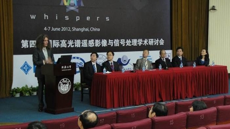 6月4日至7日,第四届国际高光谱图像与信号处理学术研讨会(Whispers2012)在上海召开,来自世界20多个国家的200余位高光谱领域专家和学者参加了此次会议。本次研讨会由国际电子电气工程师协会地球科学与遥感协会(IEEE GRSS)主办,同济大学、武汉大学、中科院对地观测中心、南京大学联合承办。 6月5日上午,会议开幕式在同济大学逸夫楼举行,中科院对地观测中心副主任张兵研究员作为大会程序委员会主席做大会发言,他介绍了本次会议的意义和宗旨,并代表Whispers程序委员会和技术委员会报告了会议论文的提交、审稿和接收情况。对地观测中心部分青年科研人员参加了此次会议,并做了3场专题报告。