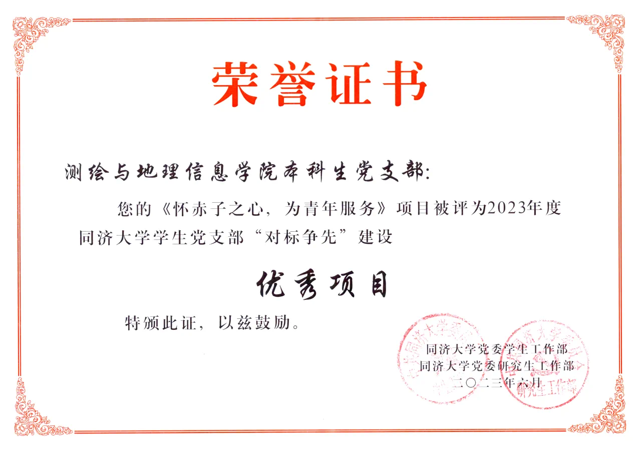 本科生党支部《怀赤子之心,为青年服务》项目获评2023年度同济大学学生党支部“对标争先”建设优秀项目,足球角球比分