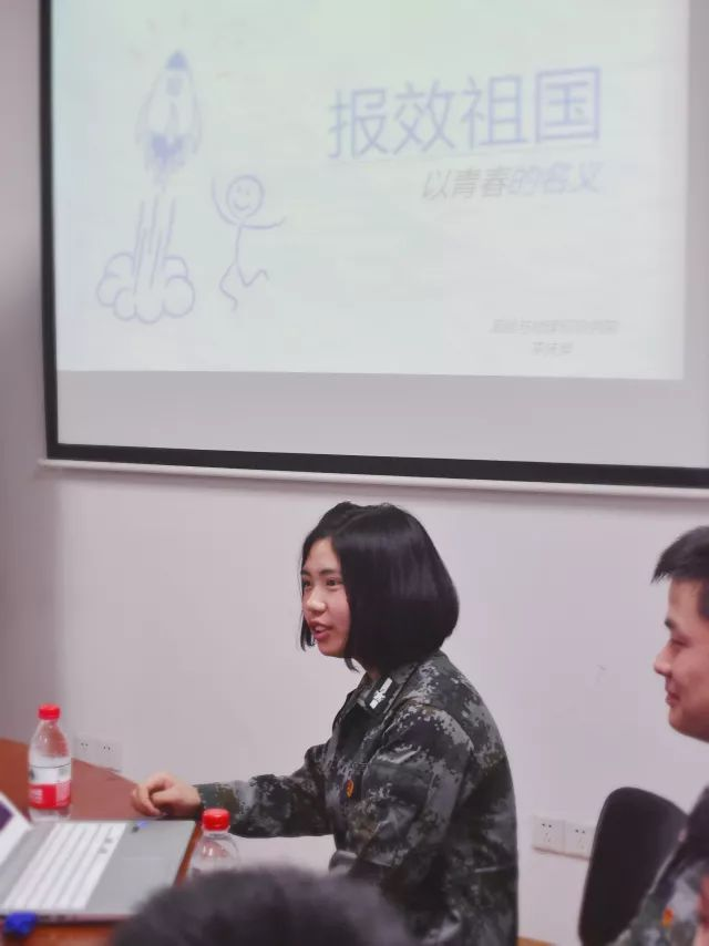 “对于一个女生来说,18到20岁是人生中最美好的两年。如果不去当兵,那今天的我也依然是21岁。既然无法改变生命的长度,那就趁着年经,去拓宽生命的宽度,去实现自己的梦想。” ——李庆美 帮厨切菜、刷碗,菜地拔草,种树,洒羊粪。身穿军装的李庆美仍是笑着,语气带有一些小委屈,说着部队里曾经的苦,“我们连长的目标就是把大家都培养成女汉子!”大家也忍不住笑起来。但当说到“整个班都把电话号码背完了才算背完了”的军队的集体意识,说到“战友情就是一起挨罚,一起扛”,说到“业务好的兵才能有资格接电话”,说到“虽然没能在现场,但想到自己保障了通讯顺畅,就算只能在视频中看到火箭成功发射也无比激动兴奋”时,这位退伍女大学生俨然因为在部队的历练而变得更加成熟、稳重了。如今的李庆美已经从军人的身份转变成为一名大学生,她认为这个转变的过程很自然,经历过部队的磨炼,就不再觉得有什么过不去的坎。最后李庆美笑着说:“如果有想参军入伍的同学,你们都可以来咨询我”。 个人经历及荣誉 1.服役期间,先后参加过“墨子号”卫星、“天宫二号”、“神舟十一号”载人航天任务、“慧眼”卫星以及其他试验任务的通信保障工作。 2.积极履职尽责并出色完成任务。连续两年被评为“优秀士兵”,并荣获“嘉奖”荣誉。 3.2017.11,参加同济大学第三届使命与担当竞赛,荣获二等奖。