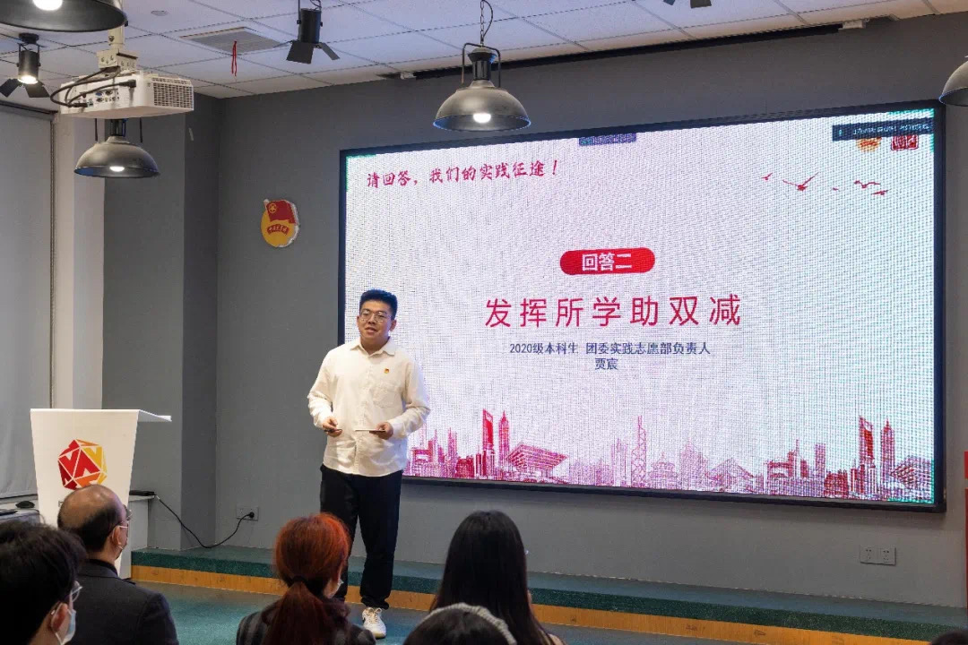 团委实践志愿部的负责人。贾宸首先介绍了今年暑期社会实践期间,4支队伍、40位实践者围绕“助力双减”进行的实践过程和取得的成效,并向足球角球比分