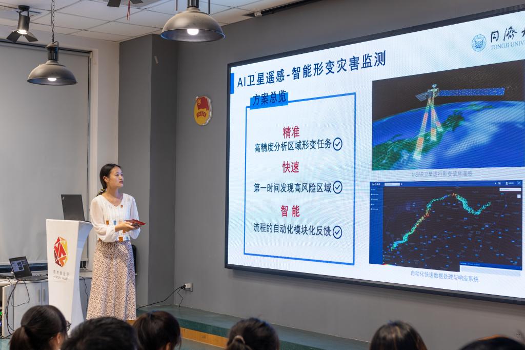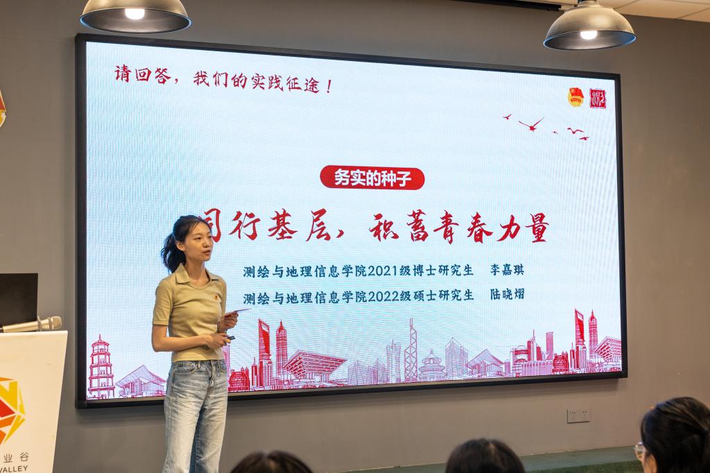 2021级博士研究生卞畏畏,是第十三届“挑战杯”中国大学生创业计划竞赛金奖项目《智能形变灾害监测平台与应用服务》的负责人。在报告会上,她同大家分享了自己和团队足履实地、探寻科创的经历。
