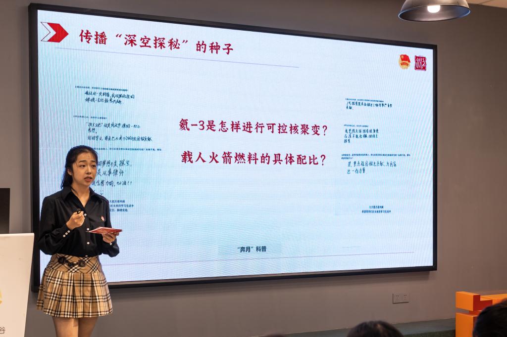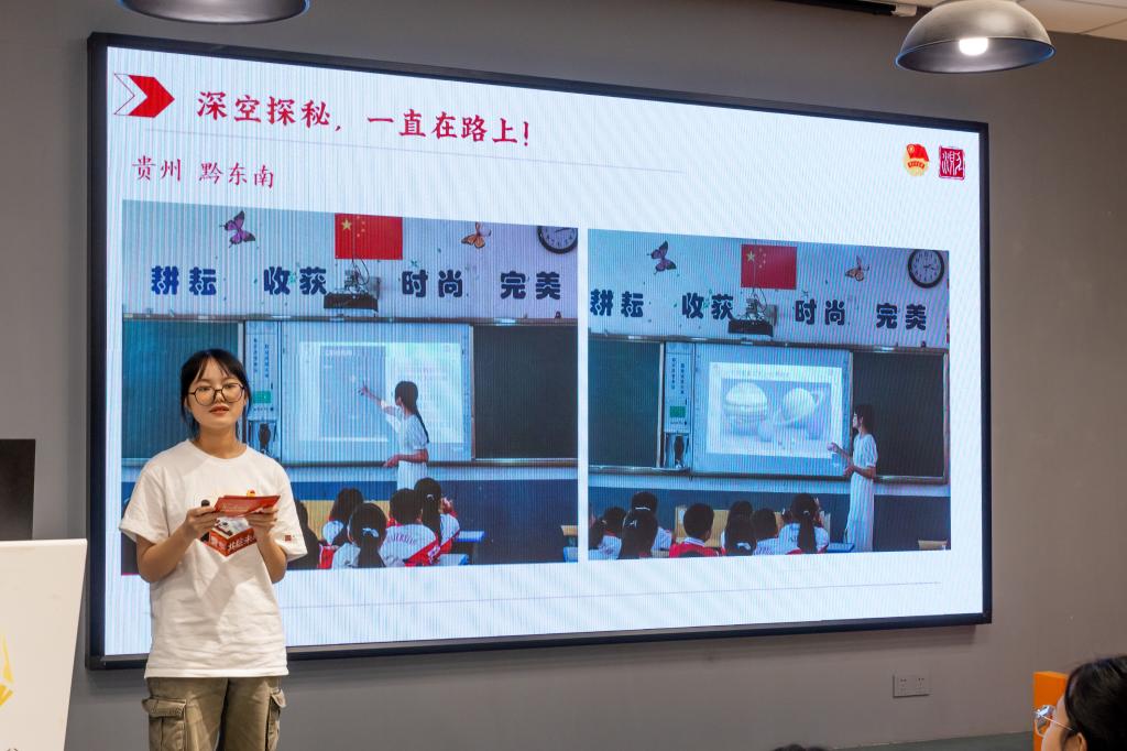 刘书萍分享了自己在贵州黔东南向六年级小朋友分享太空知识的经历。在她的带领下,小朋友们开始了一段探索宇宙奥秘的旅途。经过她的讲解,小朋友们认识了之前感到陌生的宇宙,在热烈的讨论声中,课堂氛围达到高潮。刘书萍以“永远不要限制自己的想象力”作为科普宣讲的结尾,鼓励小朋友们为早日到达理想的彼岸而不断努力、勇于探索。