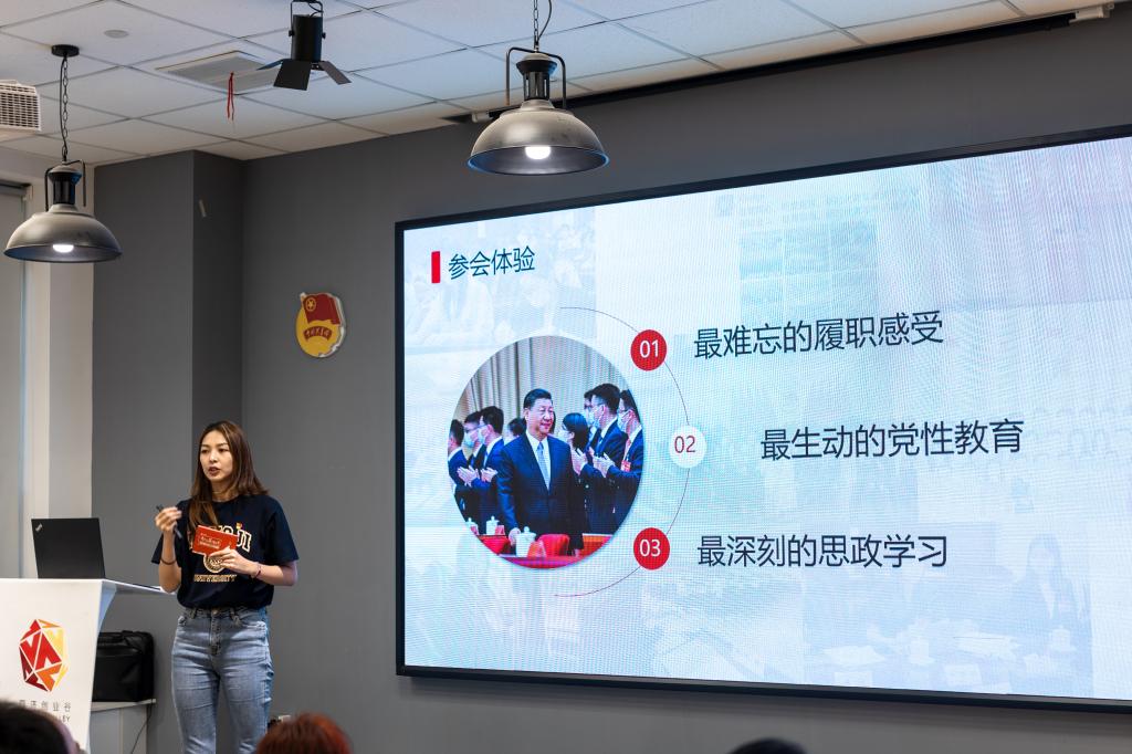 中国共产主义青年团第十九次全国代表大会,是在以习近平同志为核心的党中央带领全党全国各族人民迈上全面建设社会主义现代化国家新征程、向第二个百年奋斗目标进军的关键时刻召开的一次十分重要的大会,是全国各族团员青年政治生活中的一件大事。在黄凯琳看来,这不只是一次宝贵的参会经历,更为她带来了“最难忘的履职感受”“最生动的党性教育”“最深刻的思政学习”,令她倍受鼓舞,感受到当代中国青年生逢其时、重任在肩。在现场,黄凯琳带领团员青年共同学习党中央致词和团十九大工作报告的重点内容。