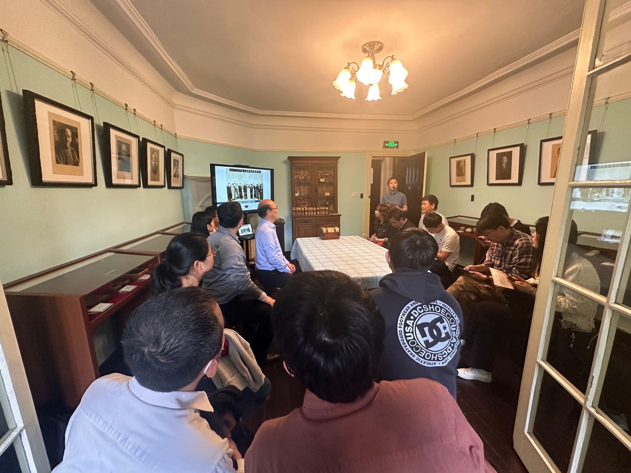 在前往位于上海市静安区华山路303弄的蔡元培故居陈列馆的途中,两个支部的党员同志们就14日上午集中培训内容都分享了自己的学习感受。大家纷纷表示谢春涛副校长的党课非常精彩,通过大量生动的历史案例,回顾和总结了中国共产党的奋斗历程,深刻解读了以中国式现代化全面推进强国建设、民族复兴伟业的科学内涵和实践路径。